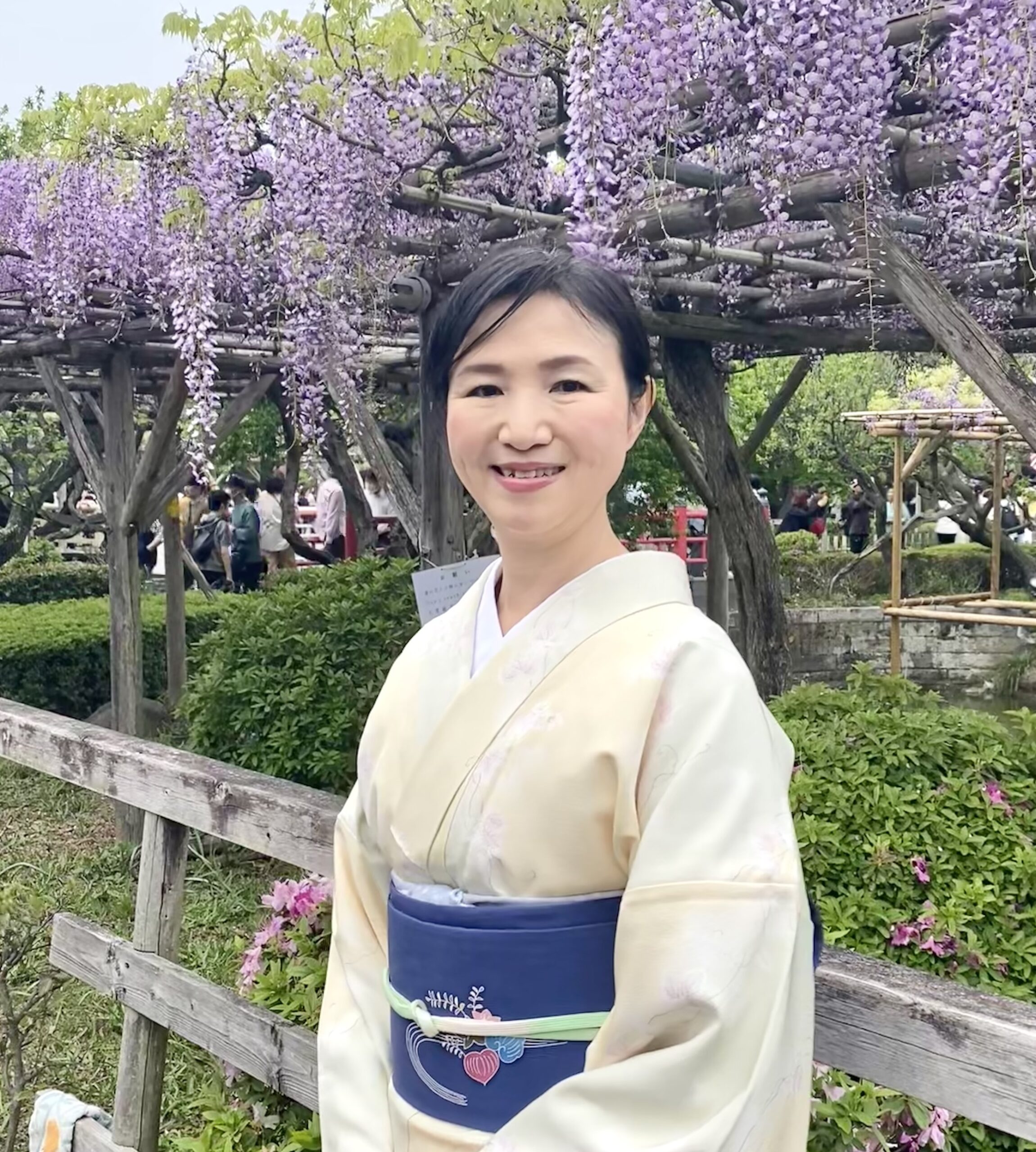 元呉服業の祖母と、養蚕業の祖父を持ち着物に憧れて育つも、高校生で既に身長170cmを超え「あなたには反物の幅も長さも足りない」と言われ、着物からは離れていましたが、2017年にトールサイズの仕立てが可能な着物に出会ったことをきっかけに2018年から着付けを習い始め、半年で振袖の変わり結びまでをマスター。